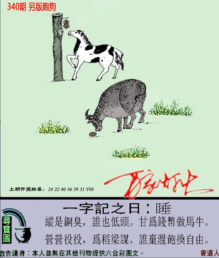 340期澳门关门联:四肢有力行千里,羊马猪鸡是特码。解 [里] [6184]
